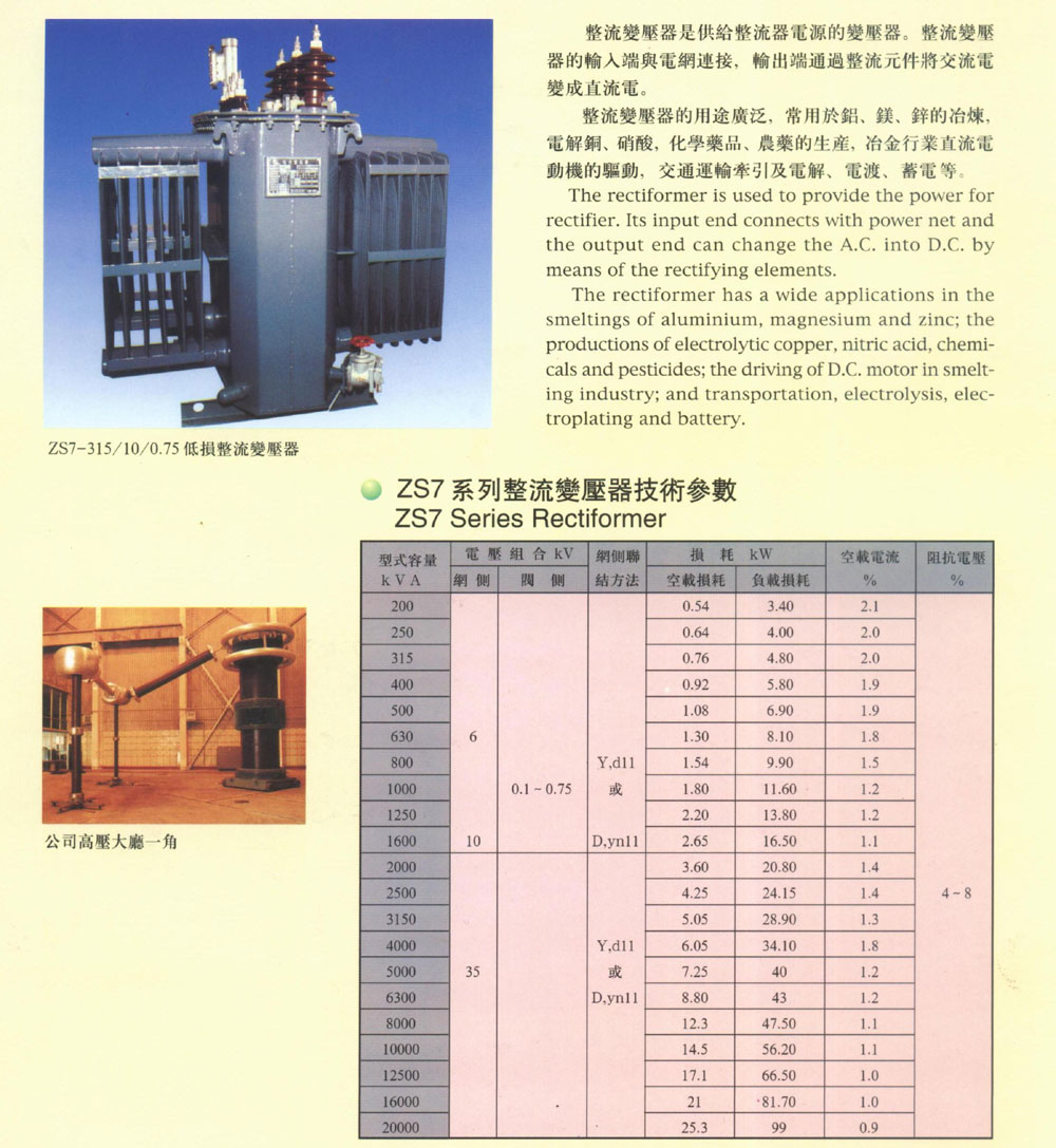 整流变压器及参数